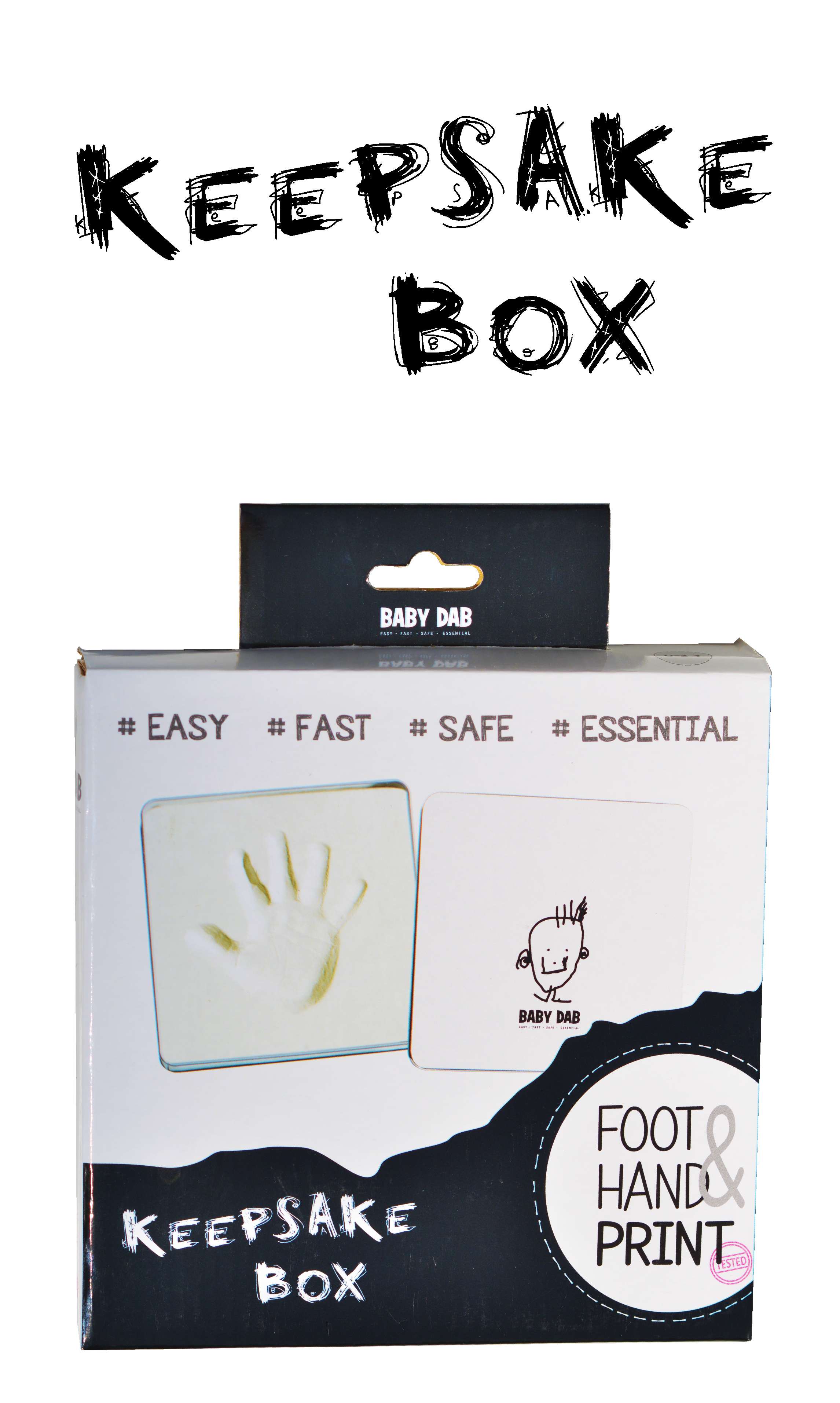 KEEPSAKE BOX je čtvercová plechovka o rozměrech 160 x 160 x 32 mm, která obsahuje sadu věcí, potřebných k zhotovení památečního otisku nožičky/ručičky dítěte do samotvrdnoucí hmoty. Naše hmota netvrdne rychle a tak mají maminky dostatek času a mnoho pokusů získat ten nejhezčí otisk, který si po vyschnutí uchovají v nádherné plechovce na pořád.